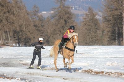 Sehr spannend war es auch beim Skijöring! Hier laufen die Pferde im Galopp über die Bahn mit dem Skifahrer im Schlepptau. Bei den erst 3-jährigen Jungstuten gewann AYLA des Aster Hannes aus Jenesien. In der Kategorie der älteren Stuten holte sich die Außenseiterfavoritin NORA des Gross Jakob aus Sarntal den großen Landesmeistertitel!